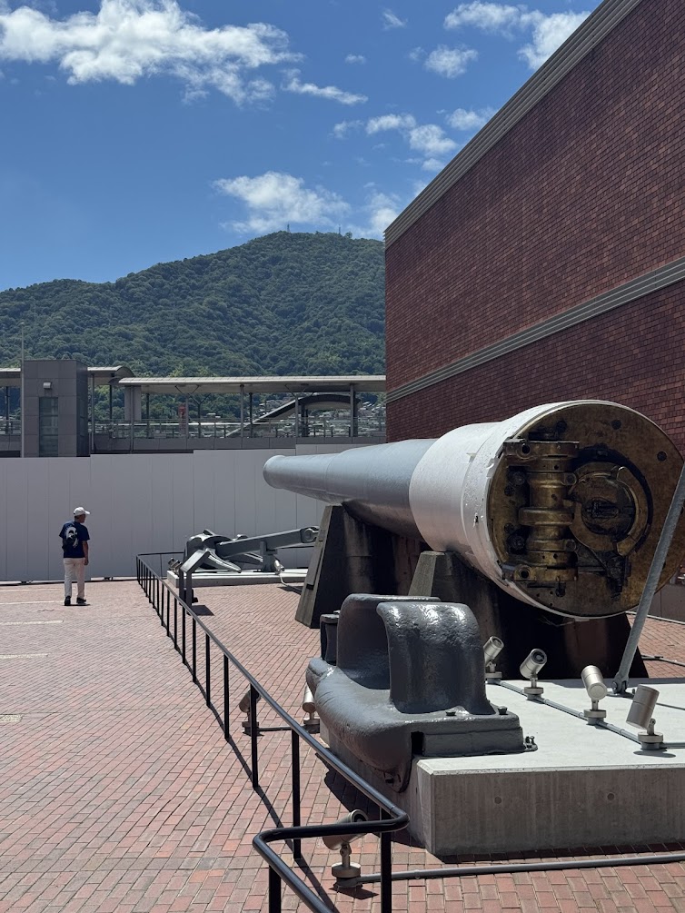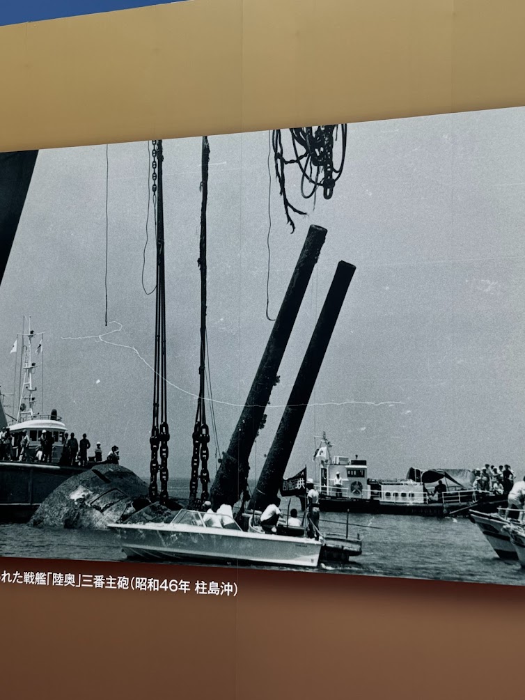 また入り口には戦艦武蔵のすごく大きな主砲が展示されています。