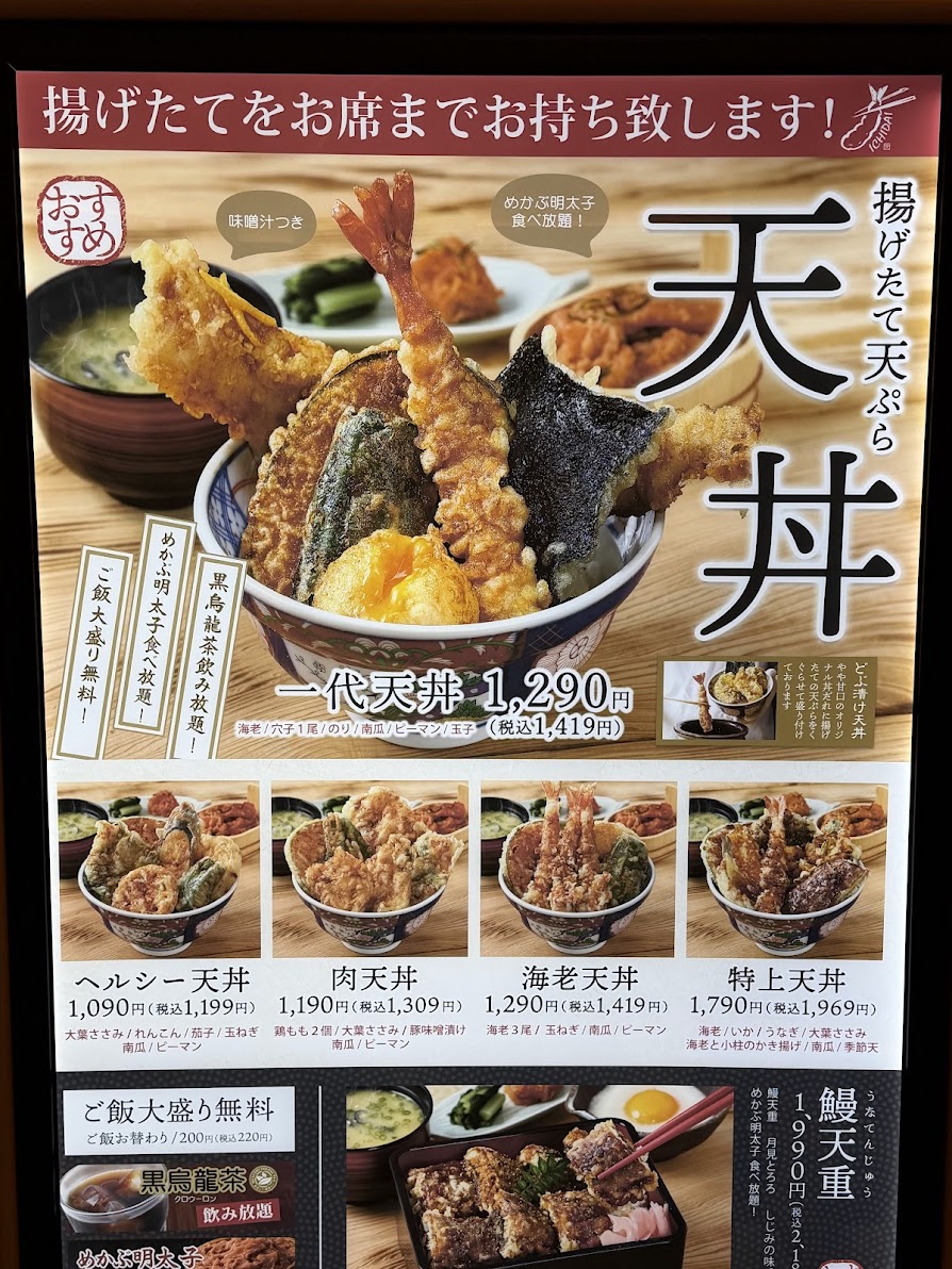 一代天丼¥1,290を食べました!ボリュームがあり美味しい!