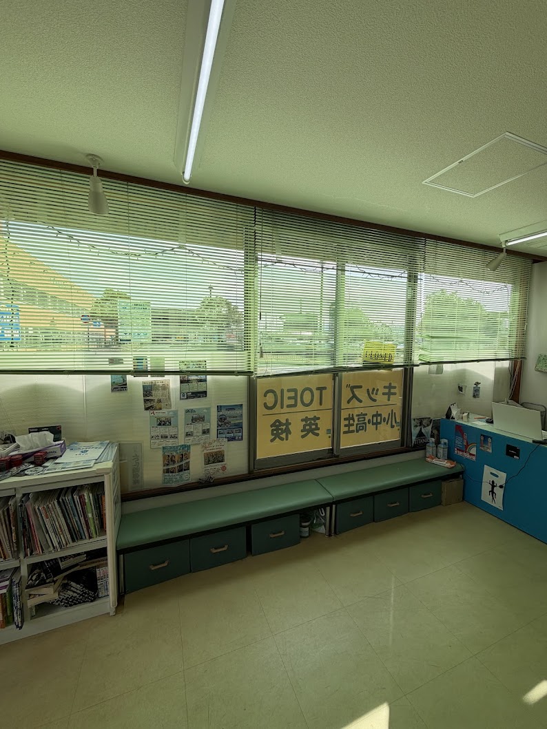 開校当初はブラインド&椅子は全てグリーンで統一。ワイルドボーイ(もうBoyではありませんが)マサは自然が大好き。